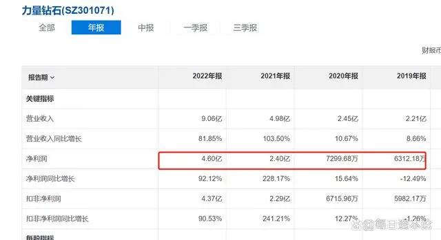 与股价的低迷形成鲜明对比的是,力量钻石的业绩保持了高增长态势。3月11日,力量钻石公布2022年年报显示,其营收为9.06亿元,同比增长81.85%;净利润4.60亿元,同比增长92.12%;经营活动产生的现金流量净额为3.29亿元,同比增长14.06%。