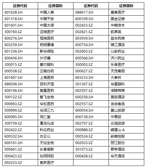 从行业分布看,根据申万一级分类,涉及医药生物、社会服务、非银金融、食品饮料四类。其中,医药生物有28只成分股,总市值20,274亿元;社会服务有10只成分股,总市值874.62亿元;非银金融有7只成分股,总市值22,918.22亿元;食品饮料有2只成分股,总市值293.55亿元。