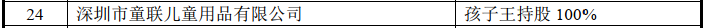 经中国经济网记者查询,深圳市童联儿童用品有限公司成立于2018年6月15日,为孩子王儿童用品股份有限公司(“孩子王”,301078.SZ)全资子公司。孩子王招股书显示,深圳市童联儿童用品有限公司简称“深圳童联”,孩子王持股100%。