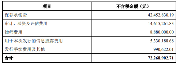 孩子王发行费用总额为72,268,902.71元,其中保荐承销费42,452,830.19元。