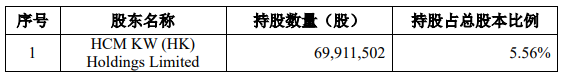 HCM KW(HK) Holdings Limited非公司控股股东、实际控制人、董事及高级管理人员;截至2025年5月30日,HCM KW(HK) Holdings Limited持有孩子王股份比例超过5%。