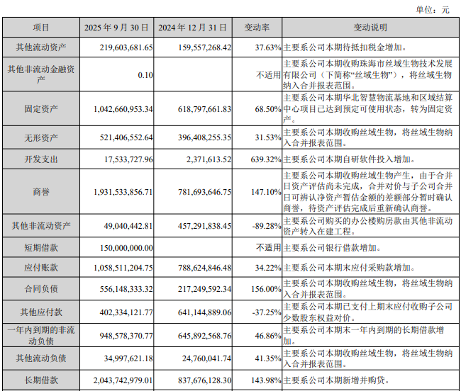 巨额的收购对价主要依靠债务融资。财报显示,截至2025年三季度末,公司长期借款达20.44亿元,同比暴增144%,主要为新增的“并购贷”;一年内到期的非流动负债也增至9.49亿元。债务规模急剧膨胀,一方面将推高财务费用,侵蚀利润;另一方面带来集中的偿债压力,考验公司的现金流生成能力与财务安全边际。