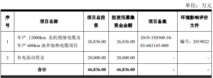 久盛电气最终募集资金净额比原计划多3973.27万元。久盛电气于2021年10月18日披露的招股书显示,公司原拟募集资金4.68亿元,其中2.68亿元用于年产12000km无机绝缘电缆及年产600km油井加热电缆项目,2亿元用于补充流动资金。