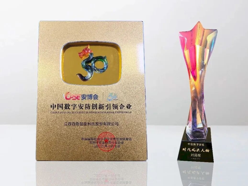 在万众期待的颁奖环节中,江西百胜智能科技股份有限公司大放异彩,一举斩获两大核心荣誉——公司董事长刘润根荣获“中国数字安防时代风云人物”,百胜智能荣获“中国数字安防创新引领企业”,成为本次盛典的焦点之一!