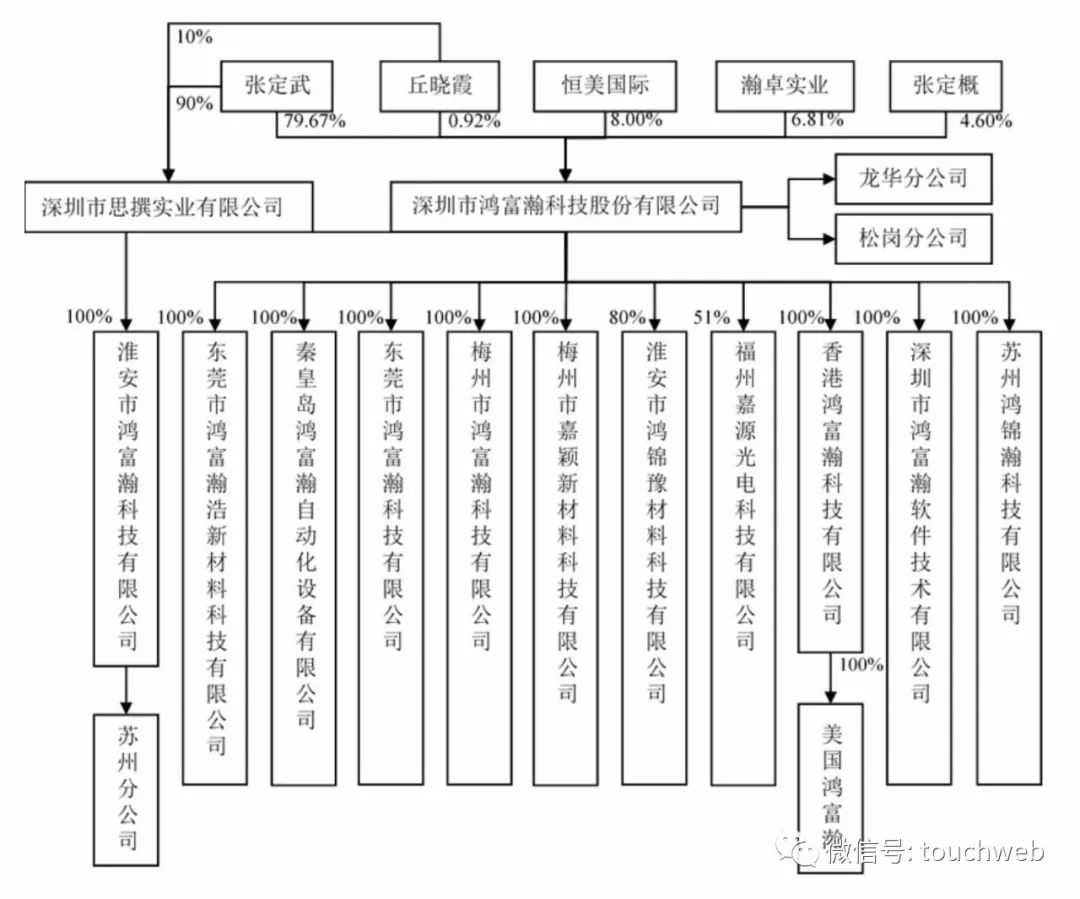 鸿富瀚实际控制人为张定武、丘晓霞夫妇,分别直接持有公司79.67%、0.92%的股份,合计持有公司80.59%的股份。