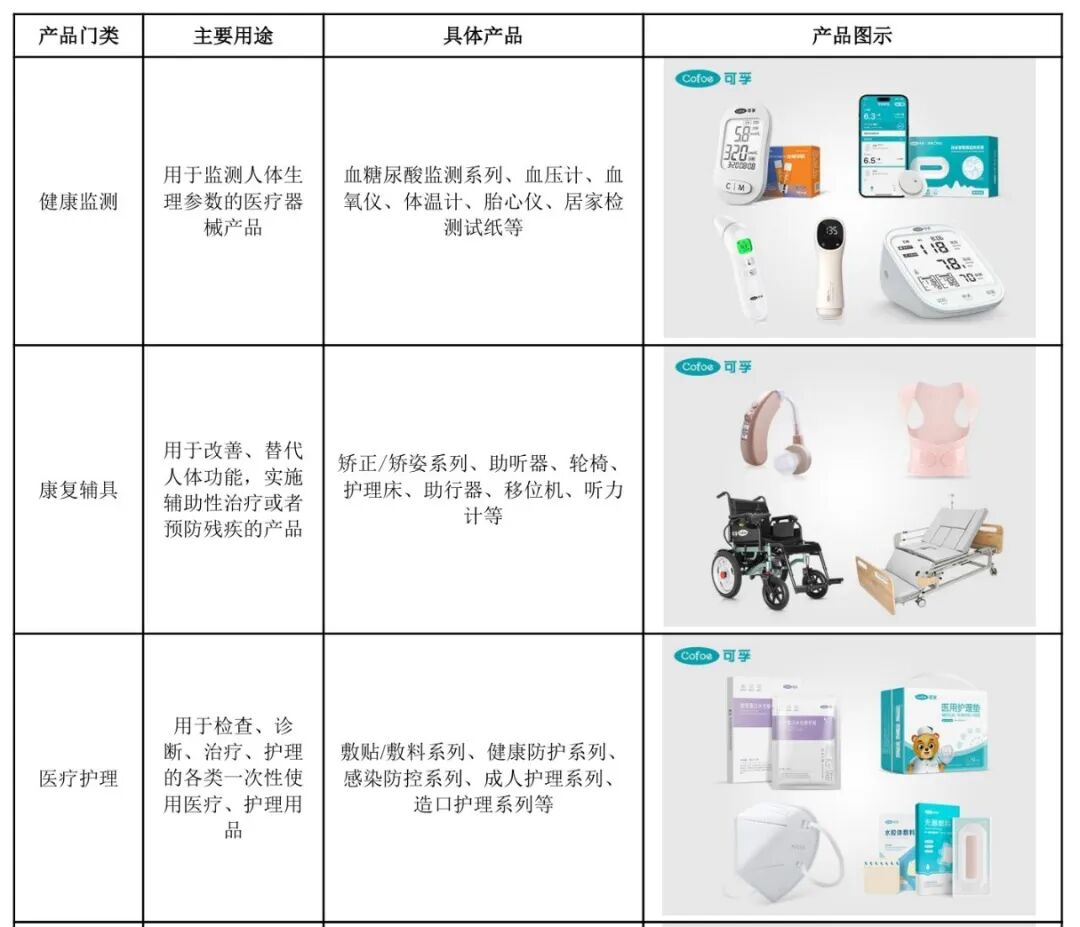 除背背佳外,可孚医疗已覆盖200个产品品类,形成了包含康复辅具类、医疗护理类、健康监测类、呼吸支持类、中医理疗类及其他五大家用医疗产品矩阵,同时覆盖了家庭健康管理的多个场景。