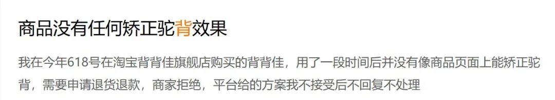 更值得关注的是,背背佳并非医疗器械,仅是消费级产品。这一点在淘宝商品页面上有着明确标注。但不少消费者在购买时,仍会因矫正驼背的宣传预期,将其与医疗级矫正效果挂钩。