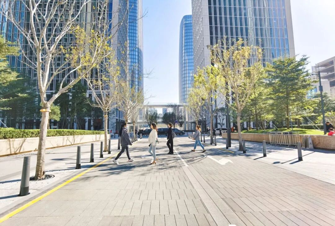 作为粤港澳大湾区中唯一直通到海的城市中心,宝安中心城区成功的完成了一场“公共空间革命”,由此来吸引片区的旅游商业消费,鼓励开放办公和户外活动。本项目对宝安区7平方公里城市中心区的街道空间、商业广场、公共绿地等公共空间进行开放和连接。采用了交通大数据的收集分析、线上和线下的公众意见的征集、周边商场业主参与等方式,保证了项目实施的可行性,满足游客与市民的使用需求。对城市街道的尺度与功能进行合理化分配,消除不可通行的界限,让商业、街道、公园连通成一个完整步行系统。同时,修建了一条14公里的“城市徒步道”,可以方便、快速的到达各个城市的旅游景点,增加旅途的复合化体验。通过衔接城市公园和街头小绿地,让人群可以随时可以停留休憩,完善城市的游览系统。宝安中心城区从传统封闭、阻塞空间转变为开放、便捷、共享的粤港澳大湾区“超级绿色客厅”。