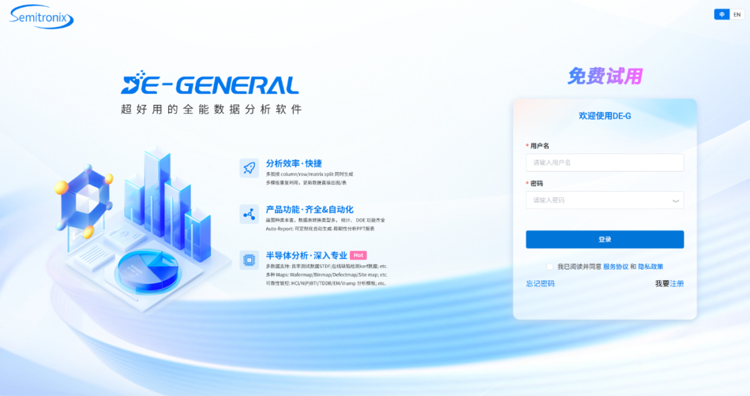 2025年8月5日,国内半导体软件领军企业广立微自主研发的通用型统计分析软件DE-GENERAL(DE-G)云端版本完成部署,即日起面向全球用户开放免费试用。作为一款功能强大的统计分析软件,DE-G在数据可视化探索、高级预测建模、全流程质量管理和实验设计等领域展现出卓越性能,已在国内多家企业获得广泛应用与高度评价。此次云端版本的发布响应了各行业对高效、专业、易用的统计分析工具的迫切需求,不仅彰显了广立微在推动行业数字化转型进程中的技术实力,更为各领域用户提供了专业级数据分析工具的全新选择。