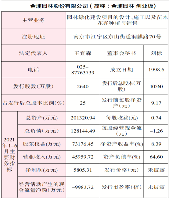 发行概览:公司本次募集资金在扣除发行费用后将用于以下项目:补充园林工程施工业务营运资金项目、金埔园林工程配套技术中心项目、金埔园林设计服务网络建设项目。