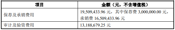 金埔园林本次发行费用(不含增值税)总额为4002.31万元,其中长江证券承销保荐有限公司与华金证券合赚保荐及承销费用1950.94万元。
