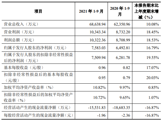 业绩来看,2021年前三季度,金埔园林营业总收入为6.86亿元,同比增长10.08%;归属于发行人股东的净利润为7583.03万元,同比增长16.79%;经营活动产生的现金流量净额为-1.55亿元,上年同期为-1.87亿元。