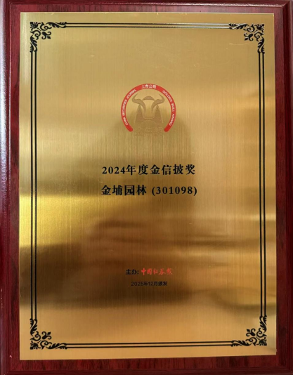 近日,由《中国证券报》主办的第二十七届上市公司金牛奖颁奖典礼在安徽合肥举行。 金埔园林 股份有限公司(股票代码:301098)凭借卓越的信息披露质量与专业的投资者关系管理,荣获本届金牛奖重要单项奖——“金信披奖”。这一权威奖项的获得,标志着公司在规范治理、透明运营及资本市场沟通等方面的工作获得了监管机构与资本市场的双重认可。
