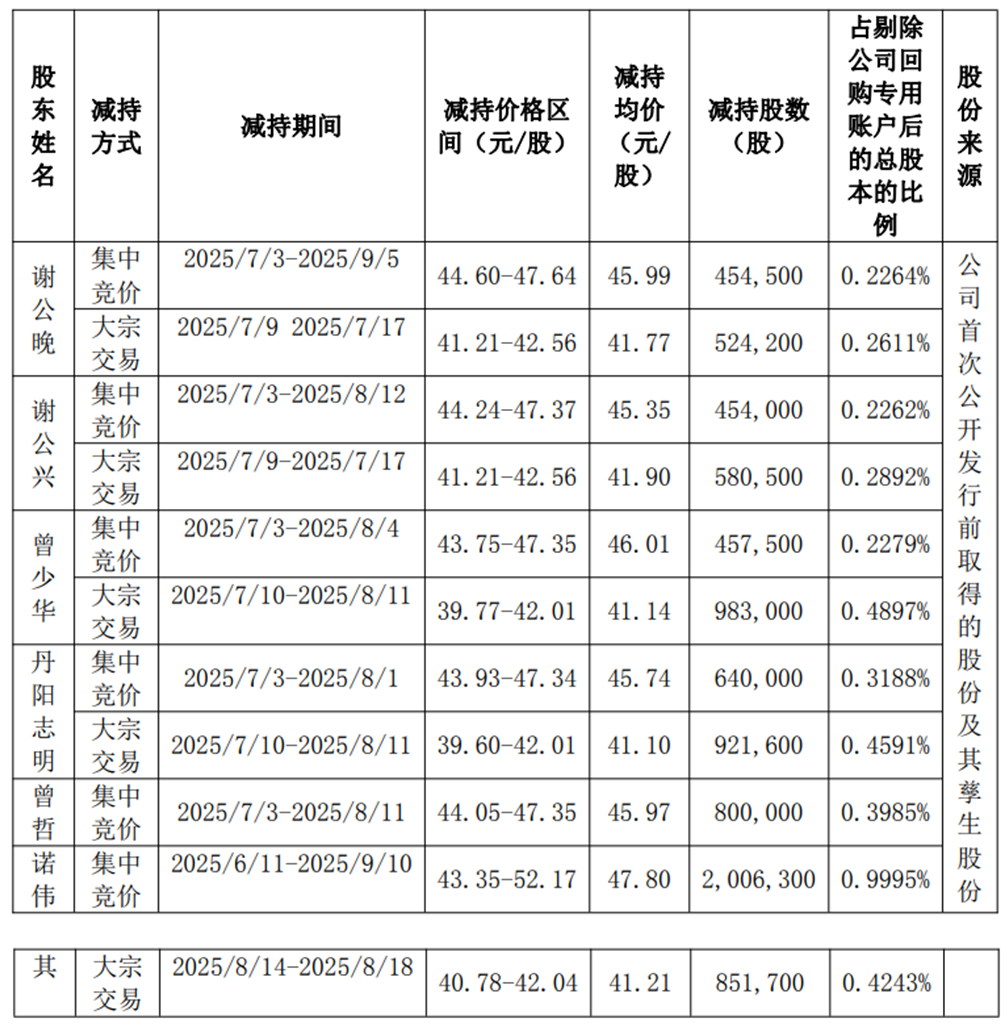 公司2025年5月19日披露了《关于实际控制人及其一致行动人、董事兼高级管理人员、持股5%以上股东减持股份的预披露公告》。合计持有公司126,849,000 股(占剔除公司回购专用账户股份数量后总股本的 63.1930%)的控股股东上海实业、实际控制人谢公晚、谢公兴、曾少华及其一致行动人丹阳志明拟于该公告披露之日起15个交易日后的3个月内(即2025年6月11日至2025年9月10日),通过集中竞价及大宗交易方式合计减持公司股份不超过6,000,000股,即不超过剔除公司回购专用账户股份数量后总股本的2.9891%。
