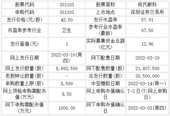 何氏眼科本次募集资金扣除发行费用后,将用于沈阳何氏医院扩建项目、北京何氏眼科新设医院项目、重庆何氏眼科新设医院项目、何氏眼科新设视光中心项目、何氏眼科信息化建设项目。