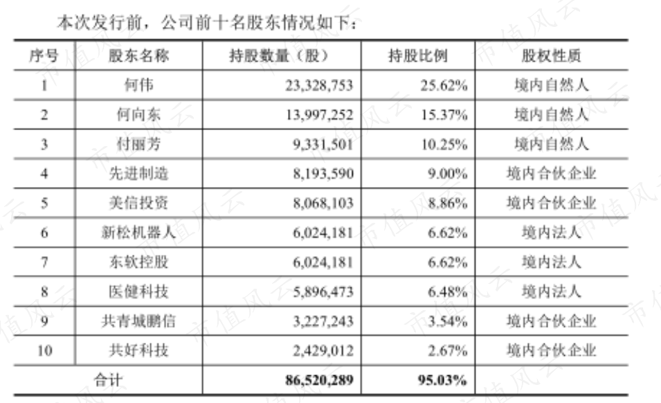 其他持有公司5%以上股份的股东,还包括先进制造(持股9.0%)、美信投资(持股8.9%)、新松机器人(持股6.6%)、东软控股(持股6.6%)和医健科技(持股6.5%)。