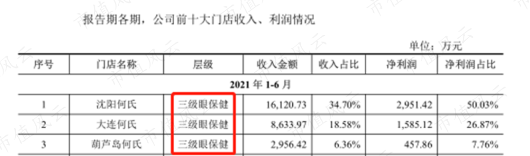 公司披露的前十大门店中,前三大均为三级眼保健服务机构,贡献了7成以上的收入和利润。
