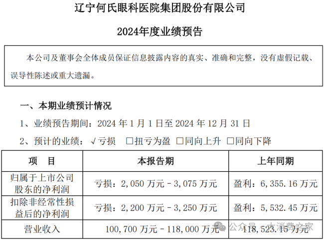 根据何氏眼科业绩预告,公司2024年度的预计归母净利润亏损2050万至3075万元,扣非净利润亏损2200万至3250万元,公司上市后将首次出现利润为负的财年,这一数据直观地反映出公司面临的困境。