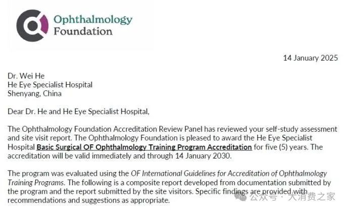 在此背景下,何氏眼科获得国际眼科基金会(OF)审核通过的