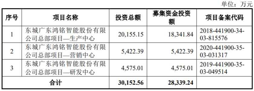 鸿铭股份本次发行募集资金总额为50,625.00万元,扣除与发行有关的费用后,实际募集资金净额为人民币42,754.15万元,鸿铭股份最终募集资金净额比原计划多14,414.91万元。公司2022年12月16日披露的招股说明书显示,鸿铭股份拟募集资金28,339.24万元,用于东城广东鸿铭智能股份有限公司总部项目—生产中心、营销中心、研发中心。