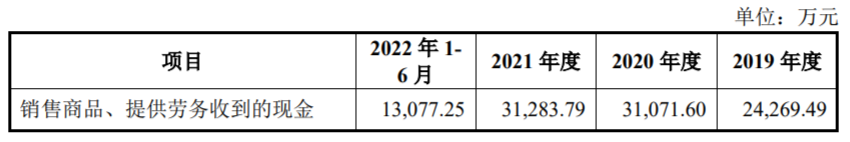 上述同期,公司销售商品、提供劳务收到的现金分别为24,269.49万元、31,071.60万元、31,283.79万元和13,077.25万元;经营活动产生的现金流量净额分别为4,525.81万元、9,633.28万元、3,751.93万元和1,200.51万元。