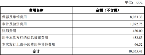 青木股份本次发行费用为1.01亿元,其中,兴业证券股份有限公司获得保荐及承销费用8033.33万元。