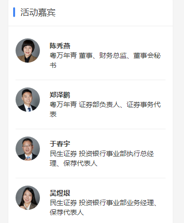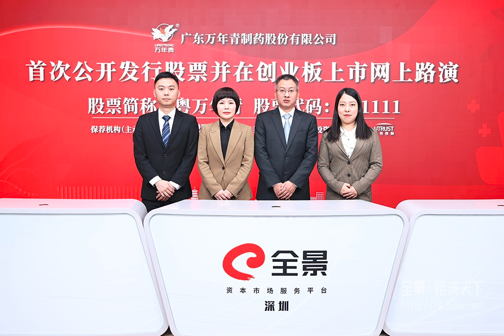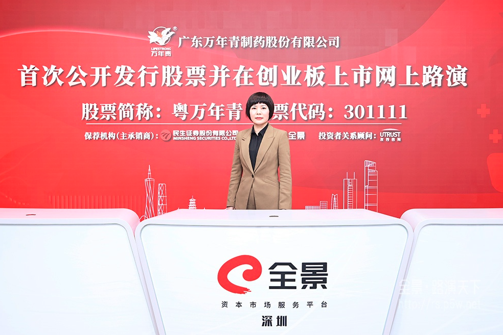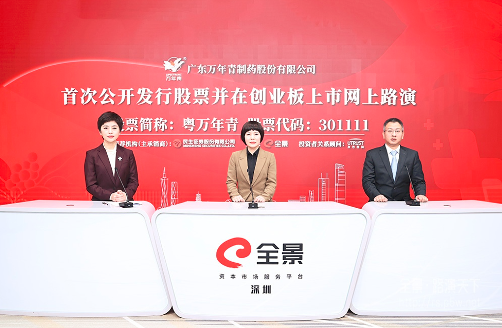 粤万年青(301111)首次公开发行股票并在创业板上市网上路演11月25日在全景网成功举行。粤万年青董事、财务总监、董事会秘书陈秀燕等公司管理层主要成员和本次发行的保荐机构(主承销商)民生证券相关人员出席了此次路演活动,并与投资者进行实时在线交流。