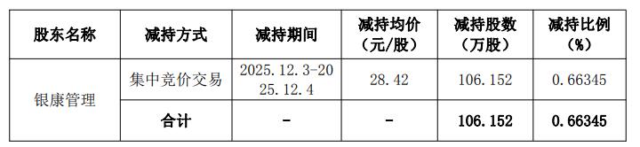 2025年12月5日,粤万年青发布关于控股股东、实际控制人之一致行动人减持股份变动触及1%暨减持计划实施完毕的公告。公告显示,银康管理2025年12月3日至2025年12月4日共计减持股数106.152万股。经计算,银康管理套现金额为3016.8万元。