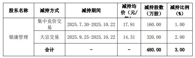 2025年10月23日,粤万年青发布关于控股股东、实际控制人的一致行动人减持股份变动触及1%暨减持计划实施完毕的公告。公告显示,银康管理2025年7月30日至2025年10月22日减持股数共计480万股。经计算,银康管理套现金额为7444.8万元。