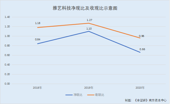 然而,报告期内,即2018-2020年及2021年1-6月,雅艺科技的净现比两年不足1,净现比及收现比在2020年双双不足1。