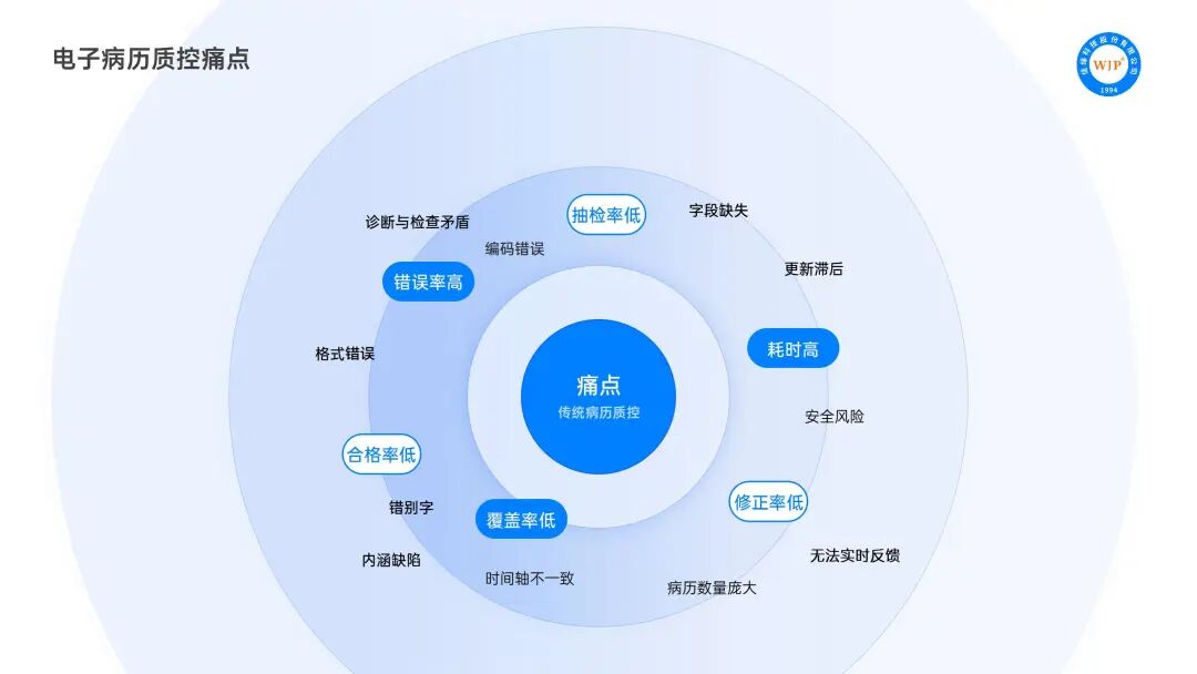 然而,一个严峻的现实摆在面前:尽管全国电子病历系统覆盖率已逾90%,并且国家相关政策明确将电子病历的规范化、标准化和智能化应用作为提升医疗质量的关键环节,但病历质控的挑战依然突出,传统模式难以满足日益增长的质量要求,正面临四大瓶颈: