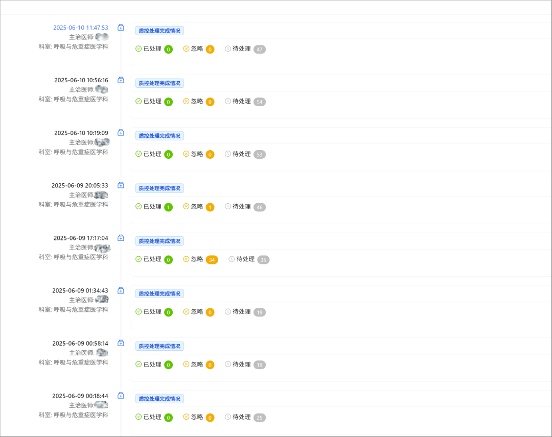 “质控时间轴”详细记录并追溯每一份病历的质控操作历程,确保过程透明、权责分明。