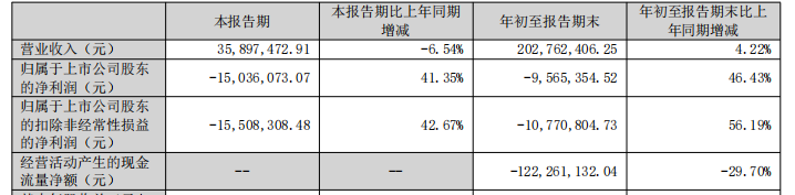 中国经济网北京12月12日讯 佳缘科技 (301117.SZ)2025年三季度报告显示,2025年前三季,公司实现营业收入2.03亿元,同比增长4.22%;归属于上市公司股东的净利润-956.54万元,同比增长46.43%;归属于上市公司股东的扣除非经常性损益的净利润-1077.08万元,同比增长56.19%;经营活动产生的现金流量净额-1.22亿元,同比下降29.70%。