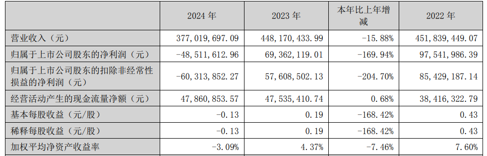2023年、2024年,新特电气营业收入分别为4.48亿元、3.77亿元;归属于上市公司股东的净利润分别为6,936.21万元、-4,851.16万元;归属于上市公司股东的扣除非经常性损益的净利润分别为5,760.85万元、-6,031.39万元;经营活动产生的现金流量净额分别为4,753.54万元、4,786.09万元。