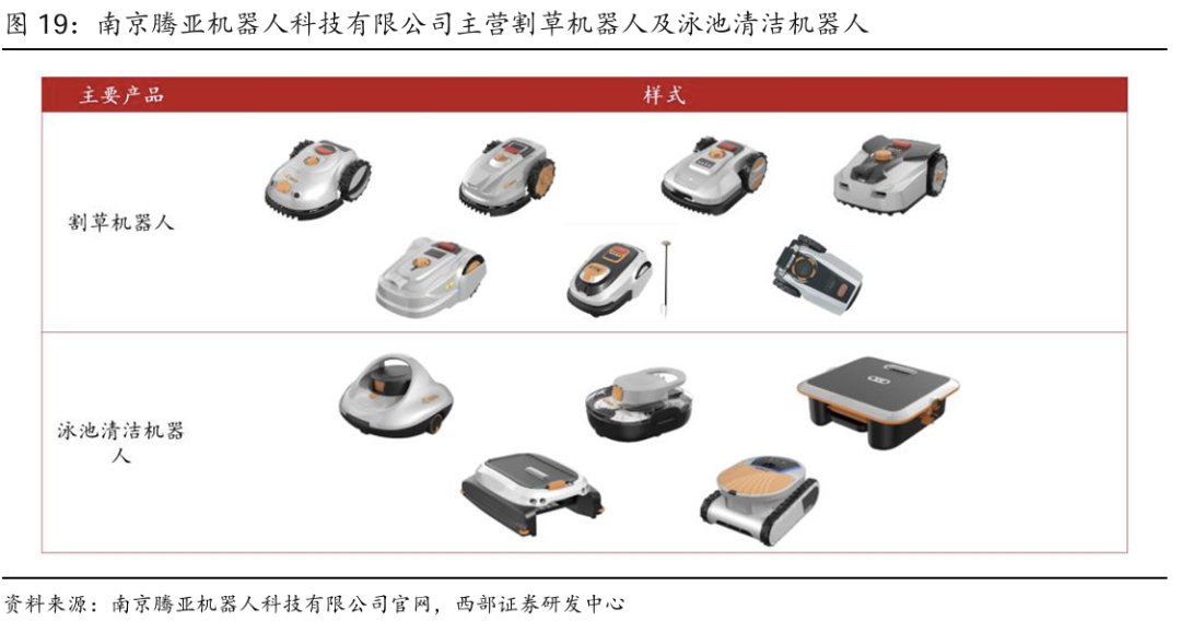 公司向集团内机器人公司销售商品。公司作为腾亚实业集团旗下子公司,主要向集团内兄弟公司南京腾亚机器人科技有限公司及安徽腾亚机器人有限公司供应模具、零部件,并承接代工业务。其中,南京腾亚机器人科技有限公司是割草机器人及泳池清洁机器人领域的领先制造商,其市场定位聚焦欧美地区,为全球相关企业提供专业的 OEM/ODM 整体解决方案。南京腾亚机器人科技有限公司机器人产品 90%的核心组件与软件均实现内部自主开发,产品具有技术可控性、成本优势及快速迭代能力,未来市场份额有望进一步提升。