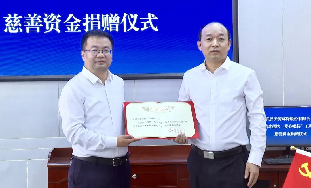 20236月28日,武汉天源环保股份有限公司“结对帮扶·爱心岷县”工程建设慈善资金捐赠仪式在岷县成功举行,天源环保捐赠100万元慈善资金用于当地贫困扶持、养老助学,同时无偿捐赠95万元乡镇污水处理设施一套。岷县县委常委、县政府副县长火飞飙,住建局党组书记、局长焦维忠,民政局党组书记、局长汪三平及相关部门领导出席仪式。天源环保联席副总裁汤正云、公司办公室主任陈少华等领导一行作为公司代表参加活动。