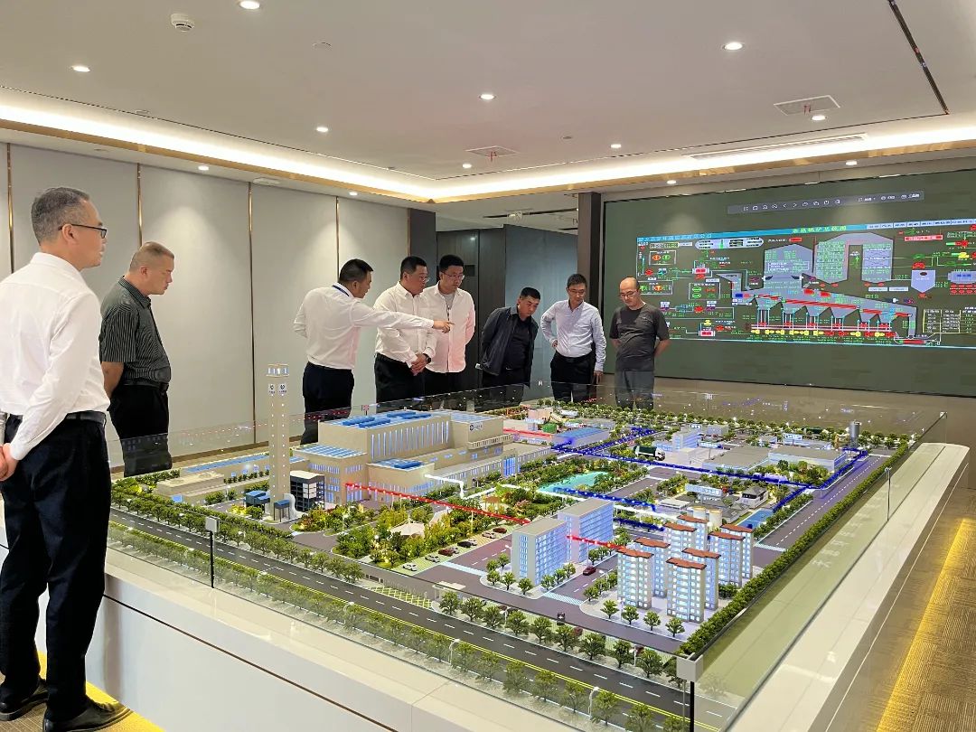 曲道凯县长一行考察期间参观了天源环保装备制造基地、研发实验中心、科技展厅以及智慧运管中心,详细了解了公司的业务布局、生产经营、装备制造及科技研发情况。