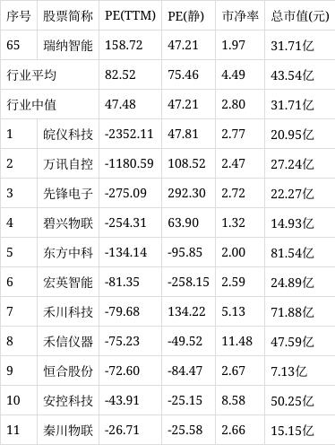 从行业市盈率排名来看,公司所处的仪器仪表行业市盈率平均82.52倍,行业中值47.48倍,瑞纳智能排名第65位。