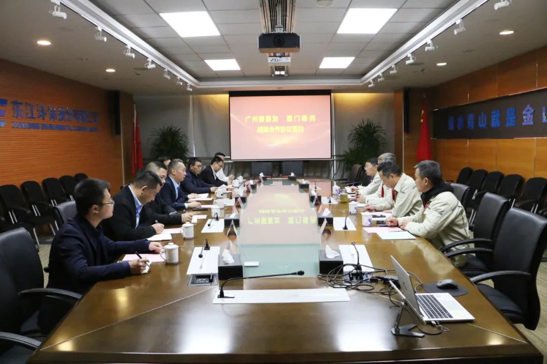 签约当日,聚赛龙董事长郝源增一行在厦门绿洲总经理王木森的陪同下参观了东江环保展厅。通过现场讲解和演示,聚赛龙一行对东江环保的产品和服务有了更直观和更深入的了解。随后,双方围绕合作方向开展了交流座谈,并就合作事项进行了充分讨论。