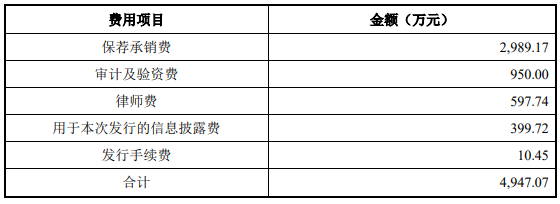 聚赛龙发行费用(不含增值税)合计4,947.07万元,其中保荐承销费2,989.17万元。