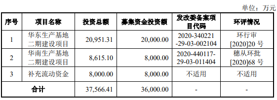 聚赛龙发行的募集资金总额人民币358,564,560.00元,扣除发行费用后的实际募集资金净额为人民币309,093,819.51元。公司最终募集资金净额比原计划少5090.62万元。公司2022年2月28日披露的招股说明书显示,公司拟募集资金36,000.00万元,用于华东生产基地二期建设项目、华南生产基地二期建设项目、补充流动资金。