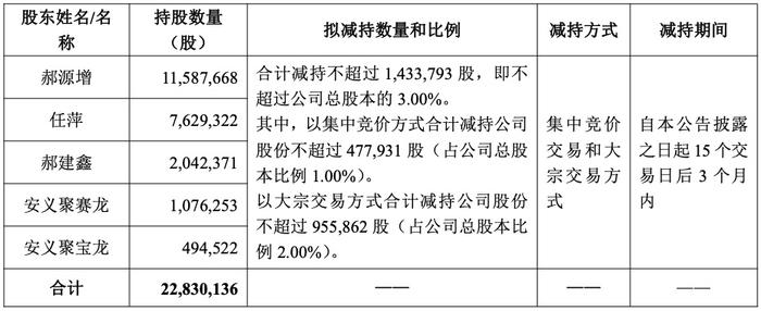 深入探究聚赛龙的股权结构,会发现其实际控制人之间关系紧密。郝源增、任萍、郝建鑫、吴若思为公司控股股东、实际控制人,其中郝源增与任萍是夫妻,郝建鑫是他们的儿子,而郝建鑫与吴若思又是夫妻。安义聚赛龙咨询管理企业(有限合伙)、安义聚宝龙咨询管理企业(有限合伙)则是郝建鑫、吴若思控制的企业,与前者构成一致行动人。本次减持原因明确为自身资金需求,减持股份来源于公司首次公开发行股票前持有的股份。