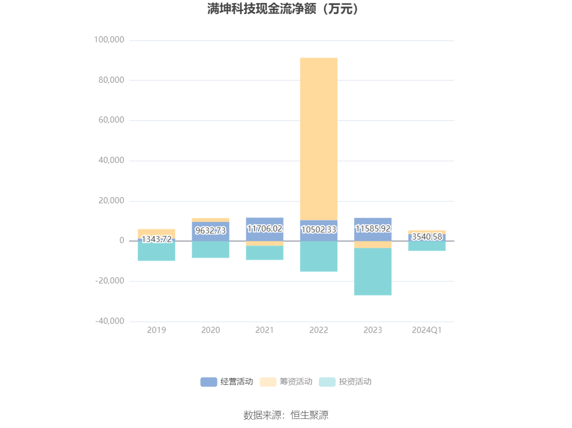 2024年第一季度,公司经营活动现金流净额为3540.58万元,同比增长79.90%;筹资活动现金流净额1860.46万元,同比减少505.26万元;投资活动现金流净额-4813.33万元,上年同期为-2138.33万元。