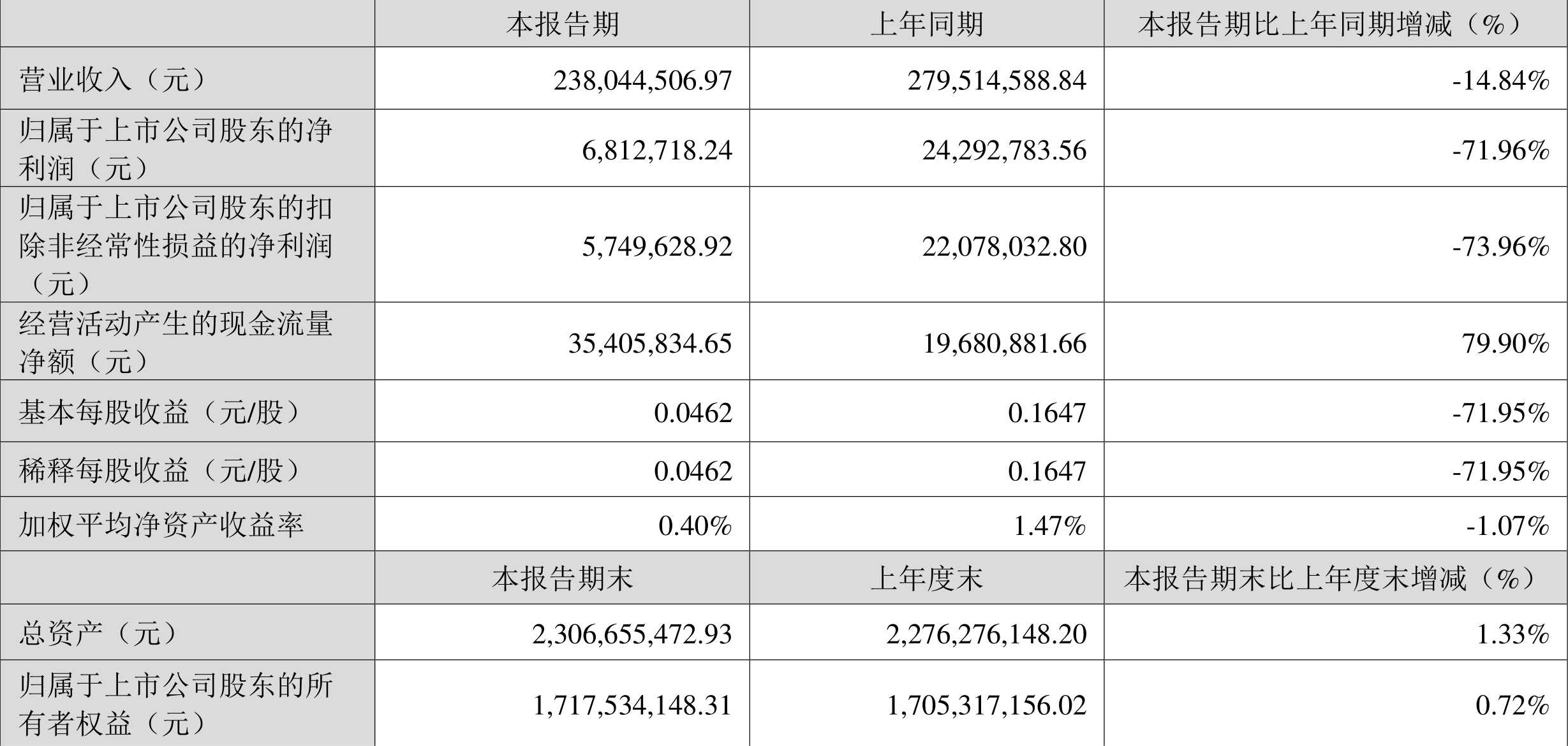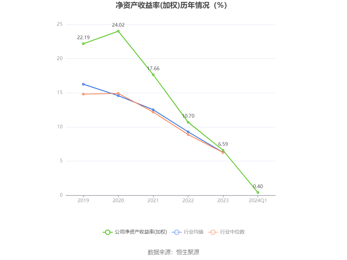 数据显示,2024年第一季度公司加权平均净资产收益率为0.40%,较上年同期下降1.07个百分点;公司2024年第一季度投入资本回报率为0.18%,较上年同期下降0.90个百分点。