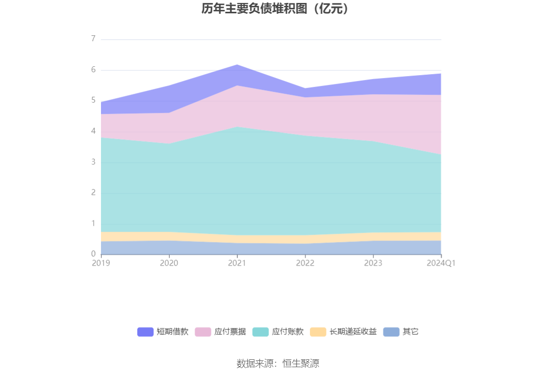 负债重大变化方面,截至2024年一季度末,公司应付账款较上年末减少14.69%,占公司总资产比重下降2.06个百分点;应付票据较上年末增加27.36%,占公司总资产比重上升1.71个百分点;短期借款较上年末增加39.99%,占公司总资产比重上升0.84个百分点;其他应付款(含利息和股利)较上年末增加30.83%,占公司总资产比重上升0.06个百分点。