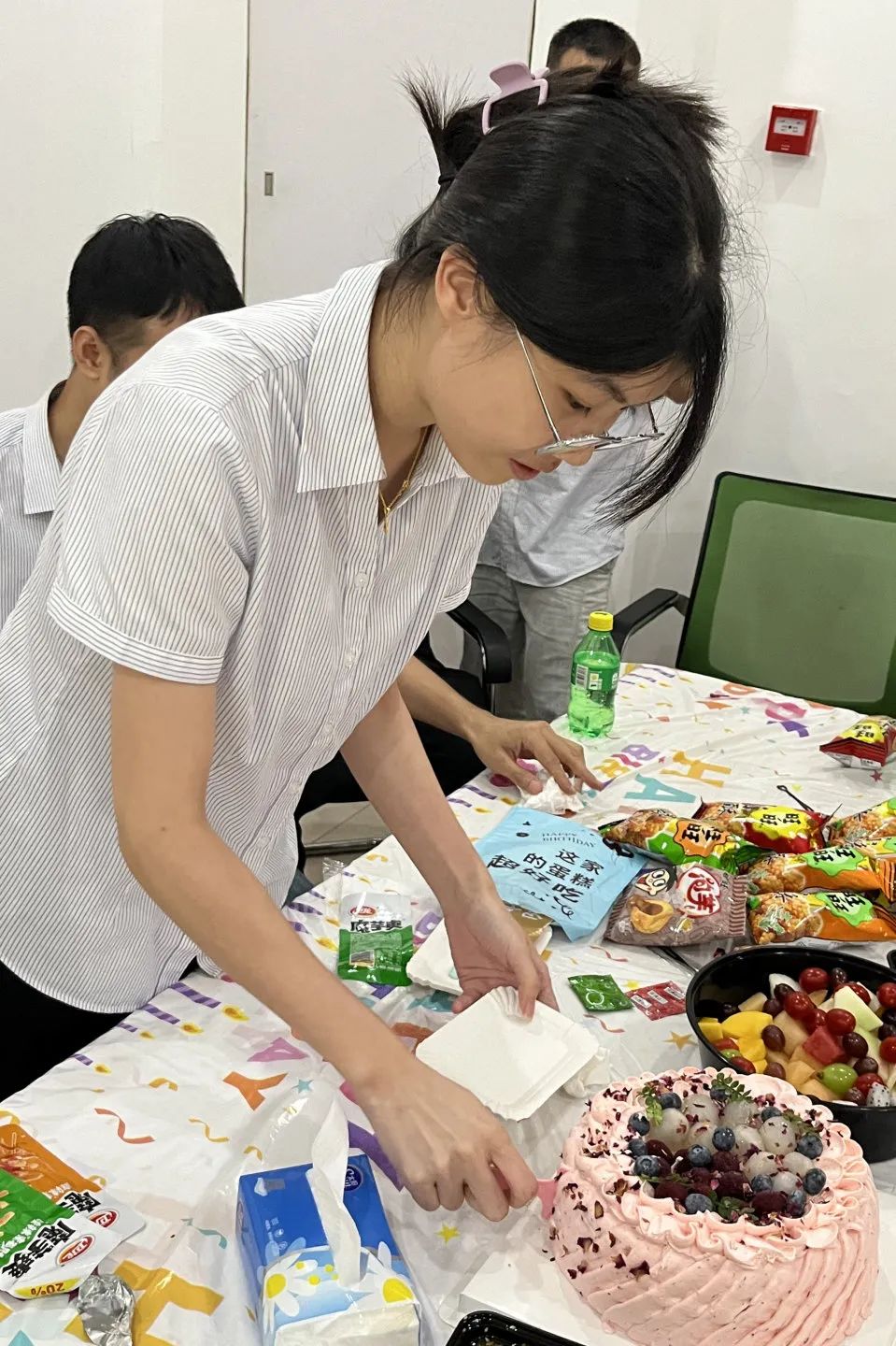 长桌上,缤纷的水果折射着夏日的色彩,精致的蛋糕承载着甜蜜的祝福。大家围坐畅谈,分享美食,也分享着工作中的点滴趣事,这一刻,忙碌的身心在甜蜜中悄然放松。