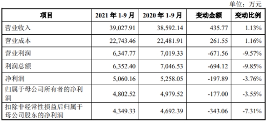 去年前三季度,公司净利下降,经营现金流净额为负。2021年1-9月,招标股份营业收入为3.90亿元,同比增长1.13%;归属于母公司所有者的净利润为4802.52万元,同比减少3.55%;扣除非经常性损益后归属于母公司股东的净利润4349.33万元,同比减少7.31%;经营活动产生的现金流量净额为-1.33亿元,同比减少6875.87万元,2020年同期为-6432.90万元。