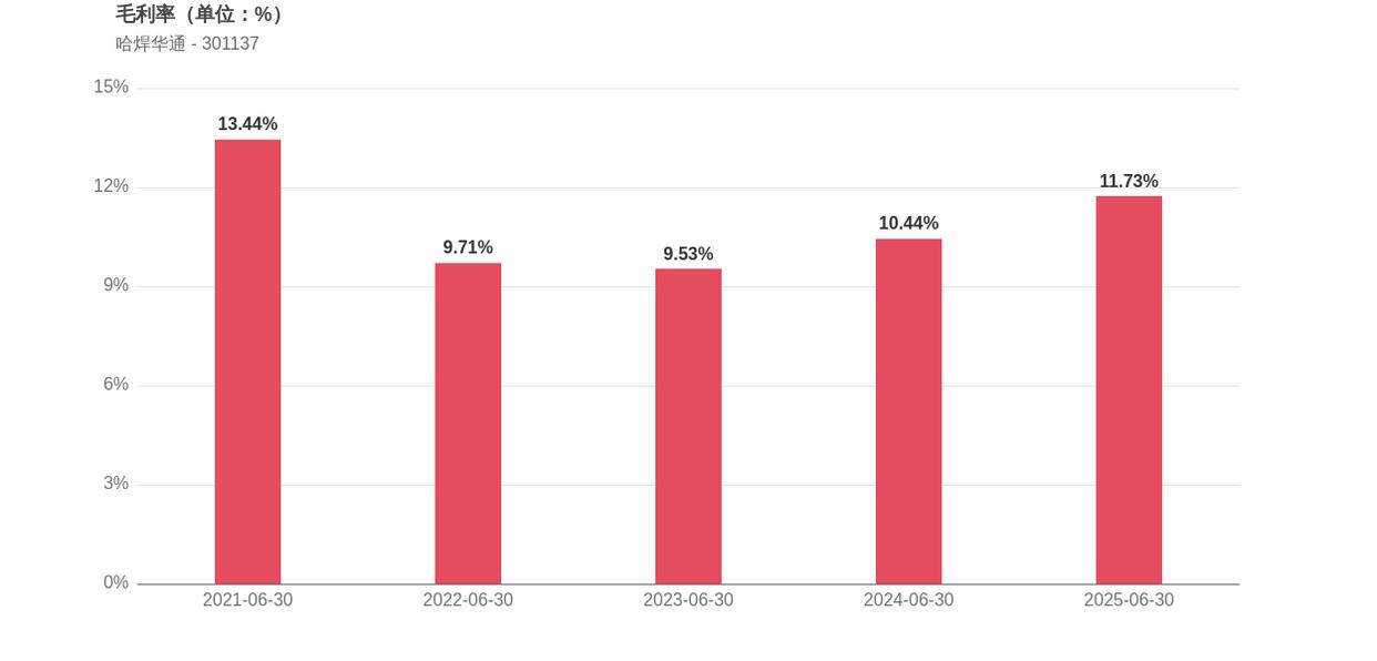 从反映盈利质量的指标来看,哈焊华通毛利率从2024年上半年的10.44%提升至11.73%,上升了1.29个百分点,但净利率由2024年上半年的2.00%下滑至1.98%,下降了0.02个百分点。