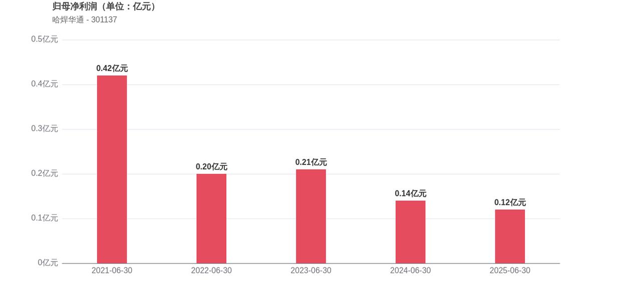 在2025年上半年,哈焊华通的经营业绩呈现营收增长但净利润下滑的态势,实现营业收入8.06亿元,同比增长12.89%,但归母净利润0.12亿元,同比下滑14.01%。引人关注的是净资产收益率已连续4年同期下滑,2025年上半年为0.90,同比下降了0.17个百分点。