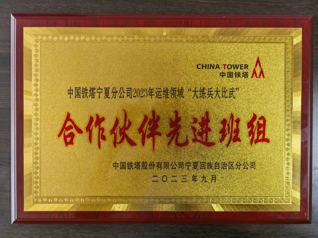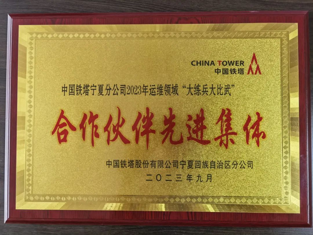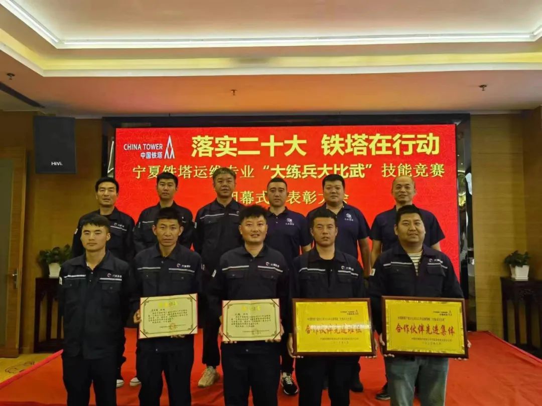 在宁夏铁塔大比武技能竞赛中,我司总成绩在代维单位参赛队伍中综合排名第一,被授予“合作伙伴先进集体”、“合作伙伴先进组”荣誉称号,公司员工梁有强、刘超分别获得动环维护专业第一名、第二名的好成绩,被评为技术能手、先进个人。